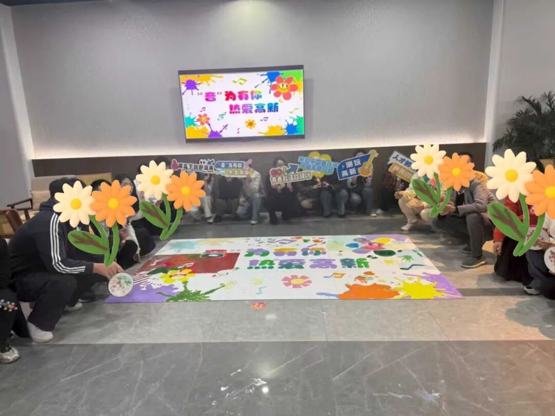 最让人印象深刻的当属 “ 共同创作 ” 环节。青年人才们自由组合,充分发挥创意,在拼图角落画上小音符、咖啡杯等元素,用色彩勾勒出对高新区的热爱。最终拼合成 “ 音为有你·热爱高新 ” 主题巨画时,现场响起了热烈掌声,每个人都在协作中感受到了 “ 共同创作 ” 的成就感,也让彼此的情谊在笔尖悄然升温。