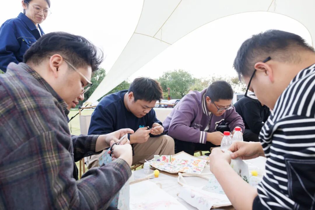 热身之后,便进入了今天的主旋律——蝶谷巴特手工包创作。青年朋友们从了解这门源自欧洲的剪贴艺术开始,一步步挑选心仪的印花图案,小心翼翼地裁剪,在纯色帆布包上精心构思布局……夏日的花朵、繁茂的枝叶、充满异域风情的图案,在大家的巧手下,被永恒地封存在帆布包上,化作了独一无二的秋日风景。
